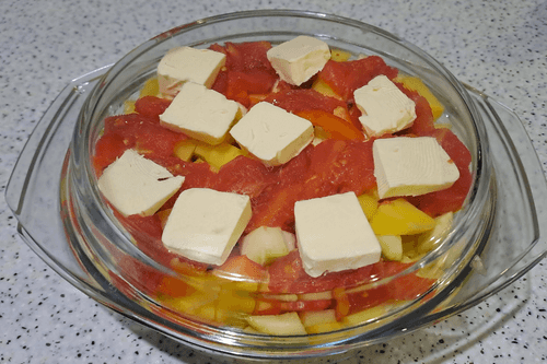 Выложить в форму нарезанное удобным способом сливочное масло, накрыть форму крышкой или фольгой и поставить запекаться в духовку при температуре 180 градусов примерно 40 минут.