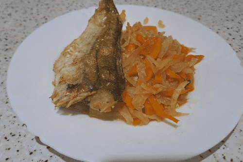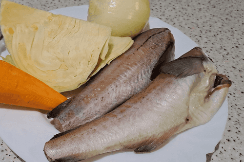 Минтай с капустой в духовке