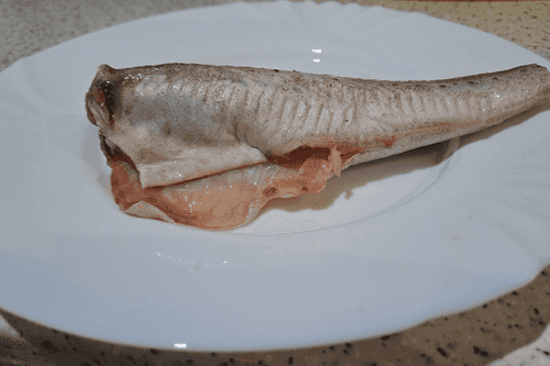 Очистить минтай от чешуи, срезать все плавники, удалить внутренности, хорошо промыть и высушить.