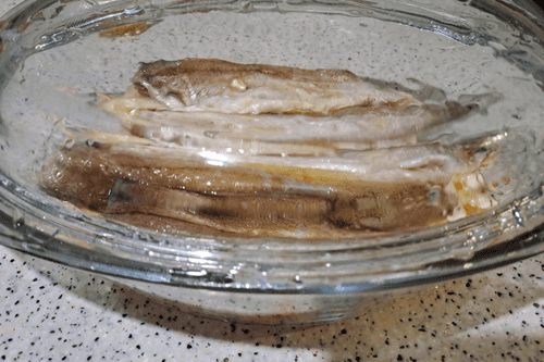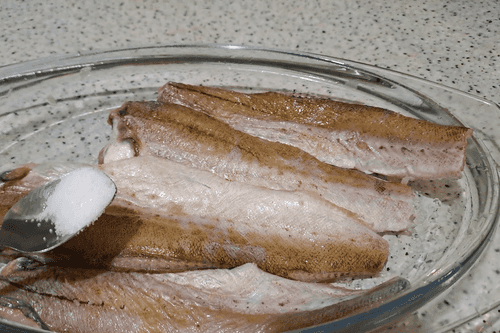 Разморозить рыбу. Самый лучший способ разморозки рыбы — это переложить ее из морозильной камеры в холодильник, где она постепенно будет оттаивать. Если рыба куплена на развес, предварительно переложите ее в удобную посуду и накройте крышкой. Второй безопасный и быстрый способ для разморозки рыбы — достать из морозильной камеры и отправить в кастрюлю с холодной водой. Если вы купили рыбу в полиэтиленовом пакете, не доставайте ее из него. Если рыба была куплена на развес, положите ее в пакет, максимально выпустите воздух и отправьте в холодную воду. Рыба при разморозке не должна контактировать ни с водой ни с воздухом.