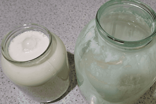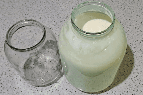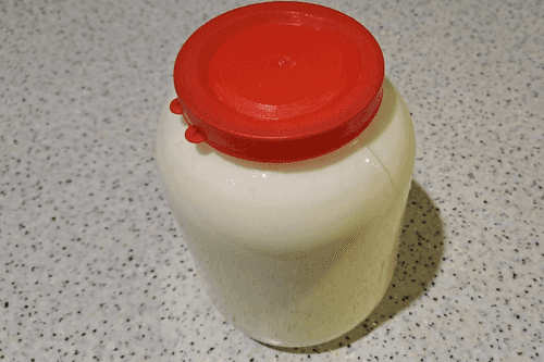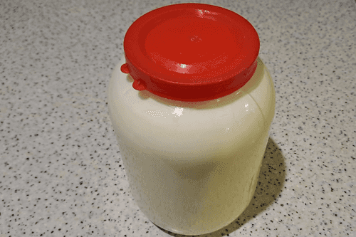 Банку с молоком объемом 3 литра поставить в прохладное место примерно на 3 часа, чтобы снять сливки, которые поднимутся поверх молока.