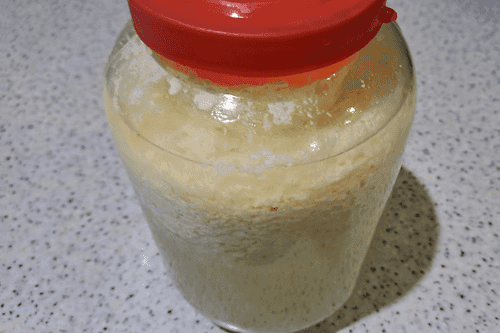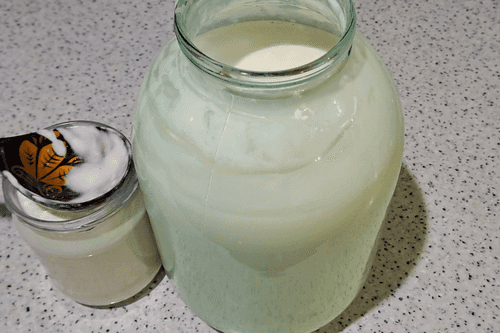 Оставить банку с молоком при комнатной температуре, чтобы оно прокисло, примерно на 6-8 часов.