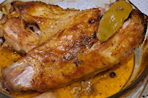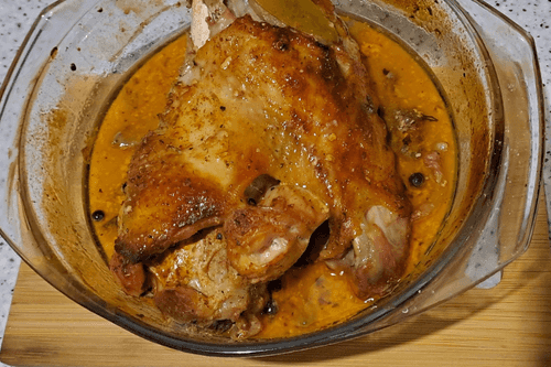 Индюшиное крыло с зеленым яблоком в духовке — это изысканное сочетание мягкого, сочного мяса птицы и легкой кислинки свежего яблока, которое при запекании становится нежным и ароматным. Блюдо берет вдохновение из европейских традиций, где фрукты часто используются для смягчения и обогащения вкуса мясных блюд. Кремовая основа из сметаны с паприкой и мускатным орехом придаёт индейке нежную текстуру и насыщенный аромат специй. Лавровый лист и душистый перец наполняют мясо теплом пряностей, создавая идеально сбалансированный вкус. Это блюдо отлично подходит как для уютного семейного ужина, так и для торжественного застолья. Подавайте его горячим, наслаждаясь гармоничным сочетанием специй и природной сладостью запечённого яблока.