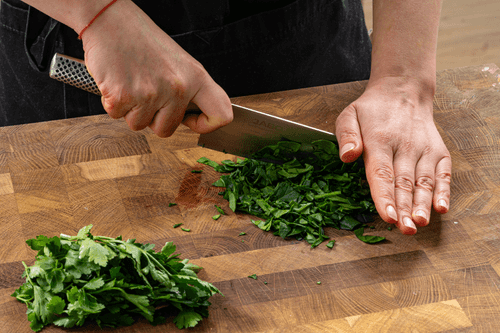Измельчить петрушку и шпинат.