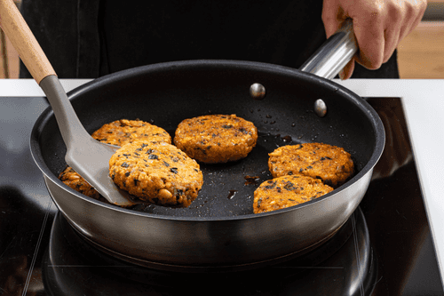 Разогреть масло в большой сковороде и обжарить котлеты с обеих сторон до золотистой корочки, а затем понизить огонь до минимума, накрыть крышкой и подождать 10 минут, чтобы котлеты пропеклись.