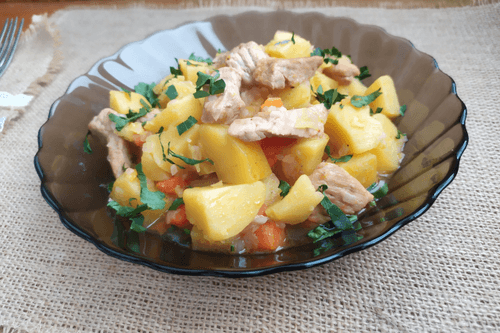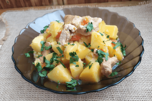 Жаркое из свинины с картофелем — это сытное и душевное блюдо русской кухни, которое издавна готовили в деревенских домах, особенно в холодное время года. Нежные кусочки свинины обжариваются до золотистой корочки, а затем томятся вместе с картофелем и овощами, впитывая ароматы паприки, смеси перцев и чеснока. Картофель пропитывается мясным соком, становясь удивительно мягким и насыщенным вкусом. В конце приготовления добавляется сливочное масло, которое придаёт блюду особенную нежность. Подаётся жаркое с посыпанной сверху свежей петрушкой, дополняющей его свежестью и легкой пряностью. Это идеальное угощение для уютного семейного ужина или застолья, когда хочется согреться и насладиться вкусом простой, но богатой традициями еды.