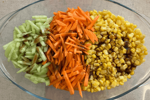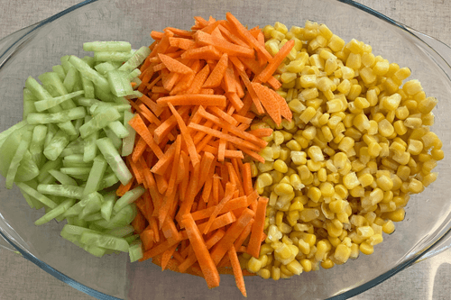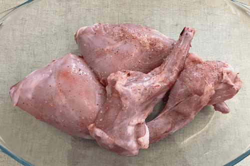 Ножки кролика с тушеными овощами — это изысканное блюдо русской кухни, сочетающее нежное мясо с ароматными овощами. Кроличье мясо ценится за свою мягкость и низкую жирность, а запекание с терияки придаёт ему насыщенный, слегка сладковатый вкус. Огурцы и морковь добавляют свежести, а кукуруза — сладковатые нотки, гармонично дополняя основную текстуру блюда. Исторически кроличье мясо широко использовалось в русских деревенских домах, ведь оно легко усваивается и подходит даже для диетического питания. Это блюдо идеально подходит для семейных ужинов или праздничного стола, украшая сервировку своей аппетитной подачей. Завершает композицию зелень, придавая свежесть и яркость вкусу.