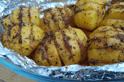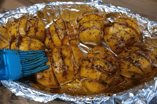 Хорошо промазать маслом со специями каждую картофелину.