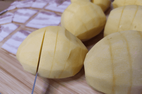 Сделать в картофеле надрезы, не разрезая до конца.