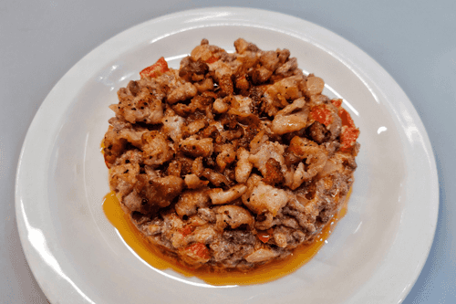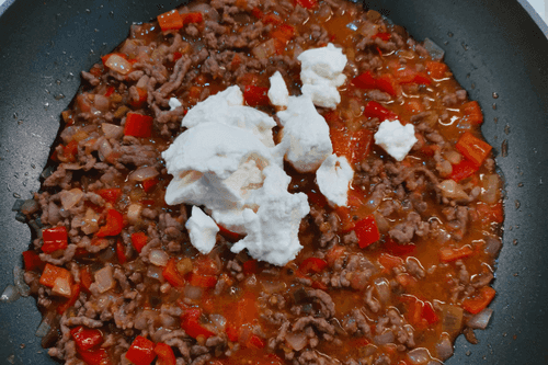 Фарш на сковороде — это яркое блюдо авторской кухни, которое объединяет насыщенные вкусы говядины, бекона и свежих овощей. Его корни можно искать в традиционной домашней кулинарии, где простота и насыщенность вкуса идут рука об руку. Золотистый лук, сладкий перец рамиро и острый халапеньо придают пикантность, а рикотта смягчает текстуру, создавая гармонию. Блюдо обладает глубокой мясной основой, усиленной ароматами специй и легкой кислинкой помидоров. Подавать его можно как самостоятельное блюдо или использовать в качестве начинки для лепешек, пасты, картофельных гарниров. Сытное и насыщенное, оно идеально подойдет как для будничного ужина, так и для особого вечера, когда хочется насладиться чем-то по-настоящему душевным и уютным.