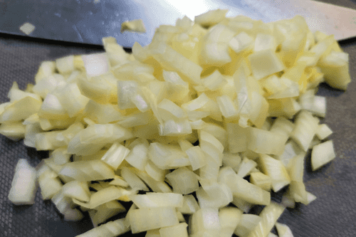 Лук мелко нарубить.
