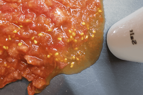 Помидор очень мелко нарезать и посолить.