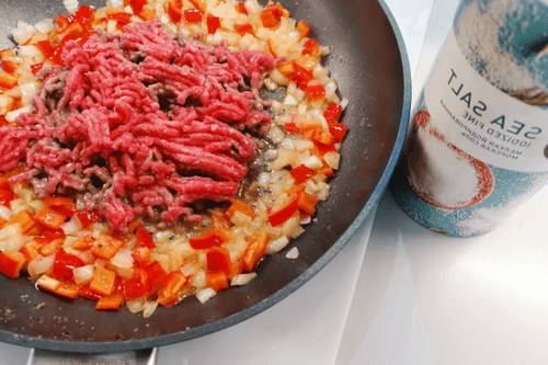 Добавить фарш и посолить.