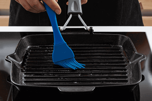 Разогреть сковороду гриль, смазать растительным маслом.