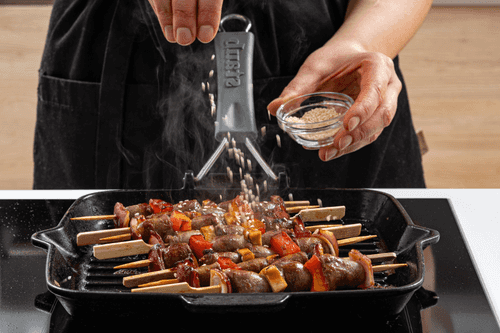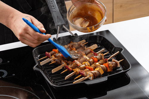 Обжаривать шашлычки в течение 10 минут, периодически смазывая остатками маринада.