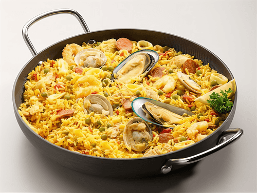 Испанская паэлья — это символ средиземноморской кухни, рожденный на солнечном побережье Валенсии. Этот богатый ароматами и вкусами рисовый шедевр вобрал в себя морские и мясные деликатесы, создавая гармоничное сочетание свежести моря и пряностей. Золотистый рис с куркумой, нежная курица, пикантный чоризо и овощи оттеняются вкусом белого вина, а кальмары, креветки и мидии придают паэлье насыщенность. Блюдо наполняет дом теплом и уютом, собирая близких за столом. Оно прекрасно подходит для семейных ужинов и праздников, а его насыщенный вкус оставляет неизгладимое впечатление. Испанская паэлья — это не просто еда, а целая гастрономическая история, передающая дух испанских традиций.
