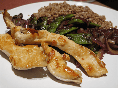 Куриное филе с зеленой фасолью и гречневой крупой — это классическое блюдо русской кухни, объединяющее нежное мясо птицы, питательную гречку и свежую зелень. Гречневая каша, популярная в России веками, дарит блюду насыщенный ореховый вкус, а обжаренное куриное филе добавляет сочность. Зеленая фасоль придаёт легкую хрусткость и свежесть, а специи — глубину и пикантность. Это блюдо идеально для сбалансированного питания: оно богато белком, сложными углеводами и клетчаткой. Подача теплая, ароматная, с легкой ноткой табаско для акцента. Такое угощение может стать прекрасным вариантом как для семейного ужина, так и для праздничного застолья. Вкус гармоничный, с мягкими текстурами, обогащенный натуральными ингредиентами. Простой и быстрый способ насладиться домашним уютом с традиционным вкусом.