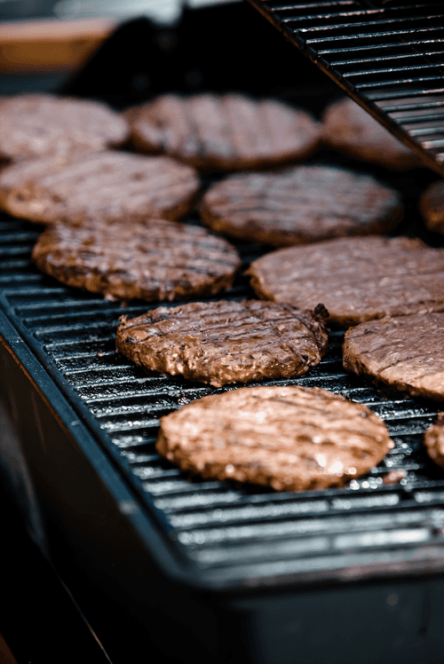 Слепите 8 плоских котлет и жарьте на гриле 10-15 минут.