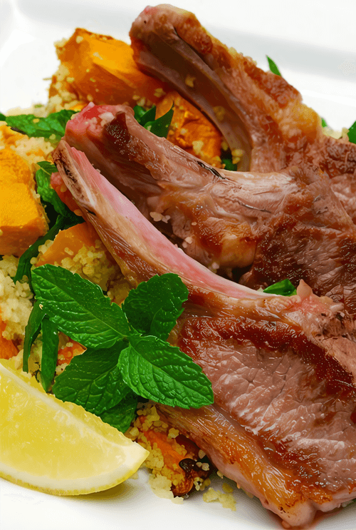 Бараньи котлеты в травах с лимонным кускусом — это кулинарное сокровище арабской кухни, пропитанное ароматами восточных специй. Этот рецепт сочетает сочность баранины с тонким ароматом тмина и чеснока, создавая насыщенный, глубоко пряный вкус. Маринад из оливкового масла и соевого соуса придает мясу нежность, а гриль добавляет аппетитную корочку. Гарнир из кускуса с лимонной цедрой освежает блюдо, придавая легкую кислинку и воздушную текстуру. Этот рецепт идеально подходит для уютных семейных ужинов или праздничных застолий, где ценится баланс между насыщенными пряными нотами и свежестью средиземноморских ингредиентов. Подается горячим, на мягкой подушке из кускуса, создавая гармонию вкусов, которые уносят вас в атмосферу восточных базаров и песчаных дюн.