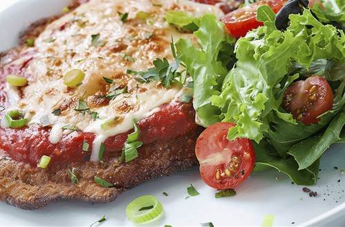 Телятина под пармезаном — это изысканное блюдо итальянской кухни, сочетающее нежность телятины с богатством вкуса сыров и ароматом пряных томатов. Его корни уходят в глубину итальянских традиций, где мясо в панировке, запеченное с сыром, стало любимым угощением. Отбивные сначала панируются, затем обжариваются до золотистой корочки, а после запекаются под слоем томатного соуса и двух видов сыра: мягкой моцареллы и пикантного пармезана. Результат — сочное мясо с насыщенным вкусом, идеально дополняемое свежими травами и специями. Блюдо прекрасно сочетается с пастой, овощами или легким салатом, делая его отличным выбором для уютного семейного ужина или праздничного застолья.