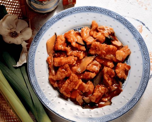 Нарежьте свинину крупными ломтями и подавайте с приготовленным соусом.