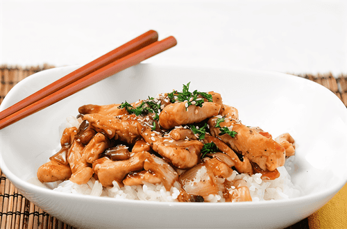 Жареная курица с устричным соусом и овощами
