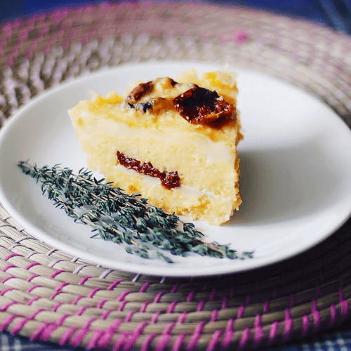 Полента с моцареллой, вялеными помидорами и пряными травами