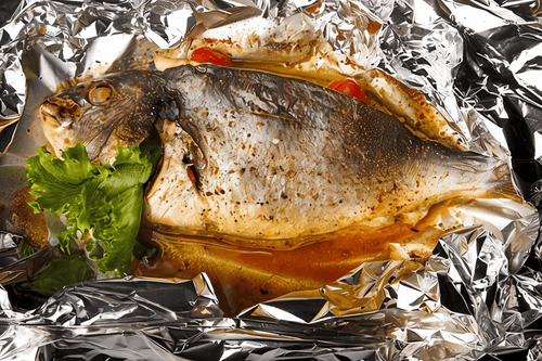 На праздничный стол подайте карпа, фаршированного аппетитной смесью из лука, грецких орехов и зерен граната. После завершения приготовления, не забудьте снять фольгу, чтобы рыба приобрела аппетитную золотистую корочку.