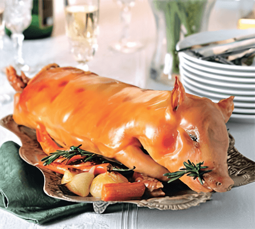 Фаршированный молочный поросенок — это традиционное блюдо русской кухни, символ праздничного застолья и кулинарного мастерства. Его история уходит в прошлые века, когда запеченные поросята украшали пиры знати. Тонкая золотистая корочка, сочное мясо и ароматный фарш на основе гречневой каши, печени, грибов и специй создают неповторимый вкус. Блюдо обладает насыщенным, гармоничным ароматом с легкими винными и пряными нотками. Готовится медленно, чтобы сохранить нежность мяса и пропитать его ароматами начинки. Фаршированный поросенок подается целиком, украшая стол и становясь его центром. Идеально сочетается с овощами и пикантными соусами. Такое угощение — не только гастрономическое удовольствие, но и дань русским кулинарным традициям.