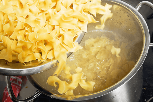 Тушить мясо полтора часа. За десять минут до готовности влить стакан вина. Вино не должно быть слишком ароматным, чтобы не забить вкус мяса и перца. Сварить в подсоленной воде макароны. Для турошчуса обычно используют домашнюю широкую лапшу, нарезанную на полоски длиной сантиметров в пять. На замену самодельной можно купить что-то похожее, например, Gold-Ei Landnudeln.