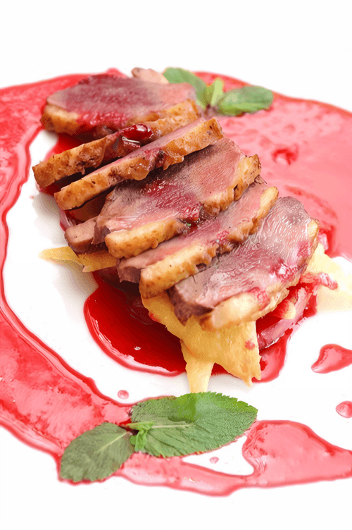 Утиные грудки в перце под черничным соусом
