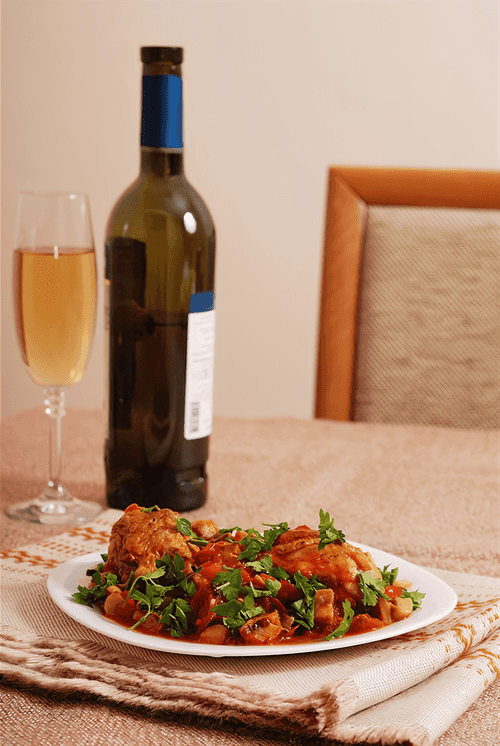 Курица с красными перцами в винном соусе
