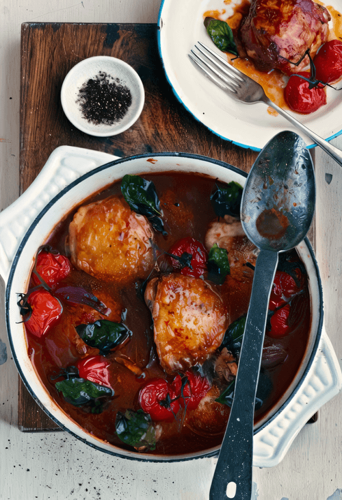 Тушеная курица в ароматном томатном соусе (Pastitsatha)