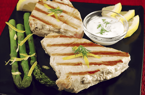 Тунец на гриле с травяным айоли
