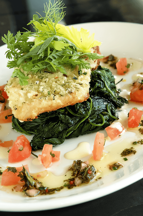 Лосось в корочке из чили и лайма с ароматной чечевицей в йогурте