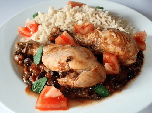 Румяная тушеная курица в томатном соусе со специями