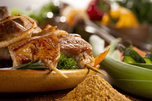 Наденьте мясо на шампуры или деревянные шпажки и жарьте на гриле, переворачивая, примерно 15-20 минут. Сразу подавайте.