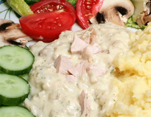 Куриное филе в соусе сырном — это воплощение домашнего уюта и гастрономического наслаждения. Этот рецепт, родом из русской кухни, сочетает простоту приготовления с богатством вкуса. Нежное, сочное куриное филе пропитывается густым сметанным соусом, который, в свою очередь, приобретает сливочную тягучесть благодаря расплавленному сыру. Это блюдо идеально подходит как для уютного семейного ужина, так и для праздничного застолья. Оно прекрасно сочетается с гарнирами — картофельным пюре, гречкой или свежими овощами. Богатый, мягкий вкус с легкой кислинкой сметаны и нежной солоноватостью сыра делает его любимым выбором для ценителей сытных и простых блюд. Подавая это кушанье горячим, вы подарите гостям и близким ощущение тепла и домашнего комфорта.