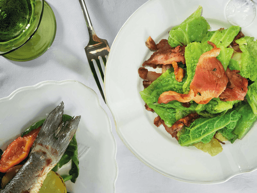 Этот ароматный итальянский рецепт сочетает нежную савойскую капусту, хрустящие каштаны и пикантную панчетту. Савойская капуста, известная своим мягким вкусом и бархатистой текстурой, идеально сочетается с богатым ореховым вкусом каштанов и солоноватым мясным акцентом панчетты. Блюдо имеет деревенские корни и напоминает традиционные итальянские домашние обеды, в которых используются простые, но насыщенные ингредиенты. Чеснок и свежий тимьян придают аромат и изысканную глубину вкуса, а тушение в небольшом количестве воды делает текстуру идеальной для сервировки. Такое блюдо отлично подходит как гарнир или самостоятельное угощение, напоминая уютные вечера в тосканском доме. Оно прекрасно сочетается с бокалом белого вина и свежим хлебом, подчеркивая его теплый, насыщенный характер.