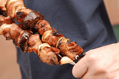 Шашлыки из баранины, баклажанов и перцев с йогуртовым соусом