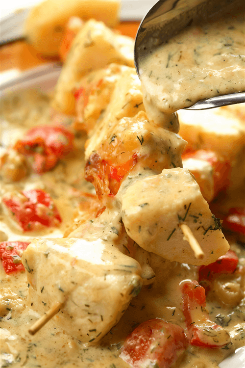 Шашлыки из палтуса и красных перцев в йогурте и песто — это изысканное блюдо европейской кухни, сочетающее нежность белой рыбы, пикантность песто и свежесть йогурта. Палтус, известный своим мягким, но насыщенным вкусом, идеально дополняется сладковатым красным перцем, создавая гармоничное сочетание текстур. Маринование в йогурте делает рыбу еще более сочной, а песто добавляет аромат средиземноморских трав. Исторически рыба на гриле популярна в приморских странах Европы, где свежие морепродукты часто становятся основой праздничных блюд. Эти шашлыки идеально подходят для летних встреч на свежем воздухе, они легкие, но питательные. Их можно подавать с зелёным салатом или свежим хлебом, чтобы подчеркнуть естественную нежность палтуса. Это простое в приготовлении, но элегантное блюдо станет настоящим украшением любого стола.