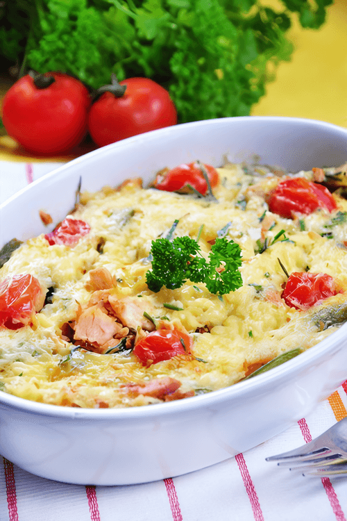 Запеченый лосось с картофелем, укропом и сливками — это истинное воплощение русского гастрономического наследия. Блюдо сочетает нежность лосося, кремовую текстуру сливок и ароматный укроп, создавая гармонию вкусов. Фенхель придаёт тонкую пряную нотку, дополняя основной аккорд. Запекание позволяет ингредиентам раскрыться, создавая сочное и насыщенное угощение с золотистой корочкой. Это блюдо идеально подходит для уютного семейного ужина или торжественного застолья. Его история уходит корнями в традиции русской кухни, где простые, но изысканные сочетания продуктов подчёркивают природный вкус ингредиентов. Подавать его можно с бокалом сухого белого вина, подчеркивая его богатый вкус и свежесть. Запеченый лосось с картофелем — воплощение комфорта и домашнего тепла в каждом кусочке.