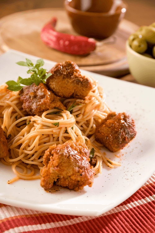 Смешать томатную пасту, молоко и 1/2 стакана воды. Добавить к мясу. Нарезать каперсы и оливки. Добавить их в конце приготовления блюда. Посолить. Затем взять муку и хорошо перемешать с блюдом.