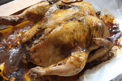 Курица, фаршированная потрошками, с сыром и розмарином