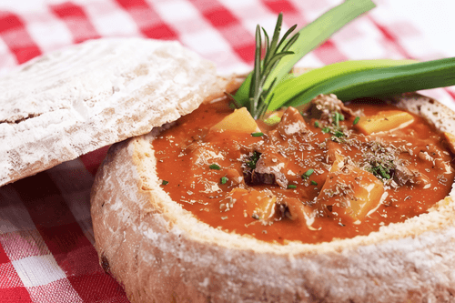 Гуляш в хлебном горшочке