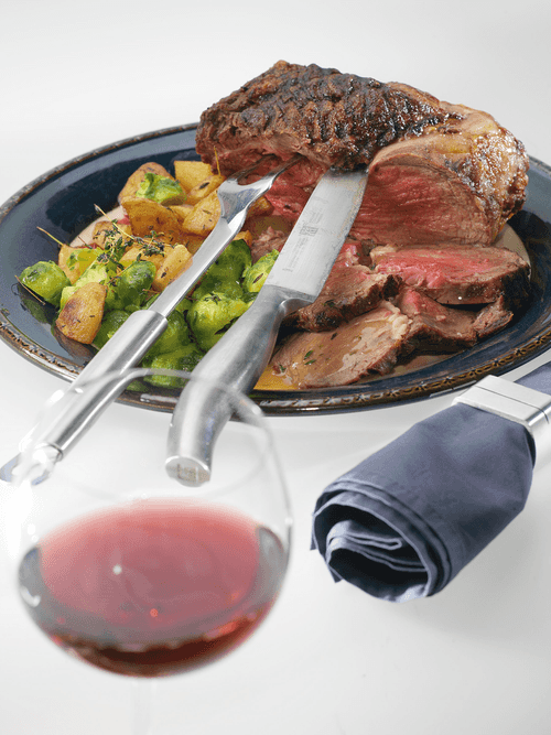Рибай с молодой картошкой, брюссельской капустой и соусом грейви