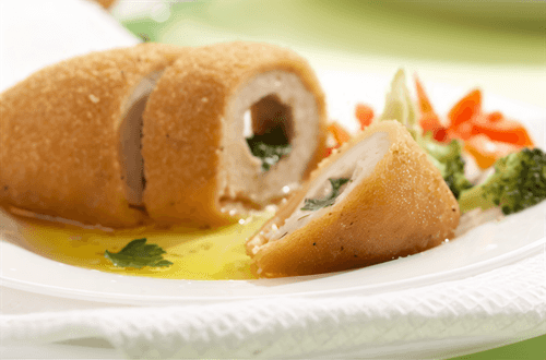Обжарить котлету во фритюре при температуре 200 градусов в течение 6 минут. Затем при температуре 200 градусов довести в духовке (примерно 4 минуты).