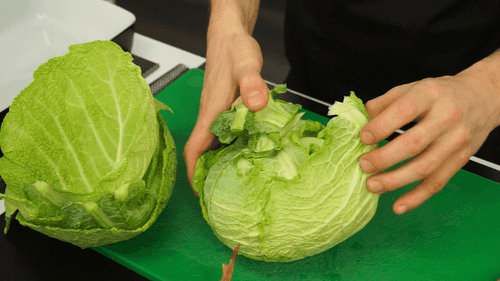 Разобрать кочан савойской капусты на листья. В дело пойдут только крупные, а от капусты останется небольшой кочанчик размером чуть больше кулака.