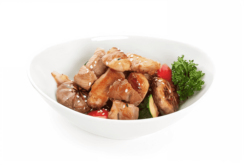 Свинина с жареными овощами в ароматном азиатском соусе с кунжутом