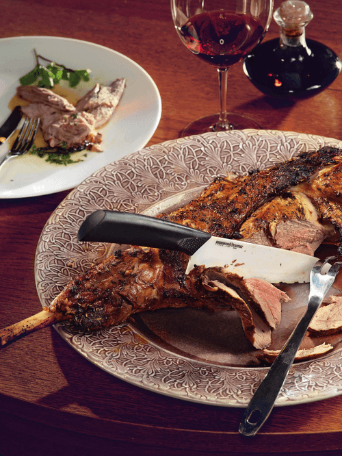 Баранья нога с мятным соусом – изысканное блюдо европейской кухни, которое сочетает в себе насыщенный вкус мяса и свежую терпкость мяты. Это блюдо восходит к традициям английской гастрономии, где баранина с мятным соусом считается классикой. Нежное мясо, пропитанное ароматами тимьяна и бальзамического уксуса, запекается до золотистой корочки, а насыщенный соус на основе говяжьего бульона, овощей и свежей мяты дополняет его восхитительными оттенками. Блюдо идеально подходит для торжественного ужина, а мятный соус придает легкость и свежесть вкусу, делая его незабываемым. Прекрасно сочетается с запеченными овощами или картофельным пюре.